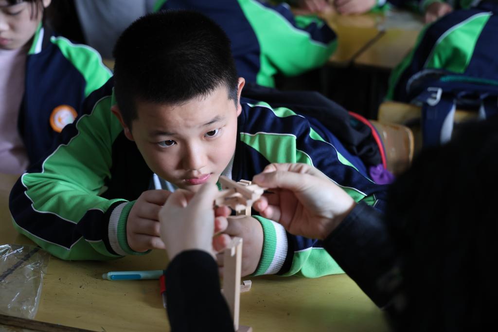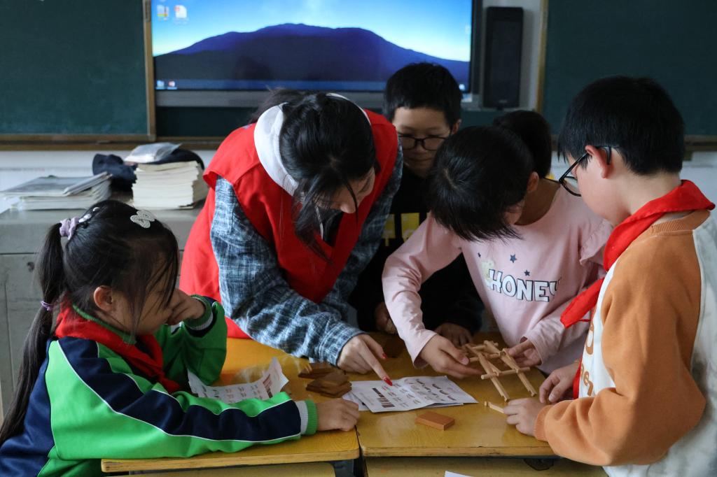 随后,建筑系团总支“青筑志愿服务队”,讲解鲁班锁的发明渊源、文化价值及时代意义,并引导孩子们思考如何传承工匠精神。