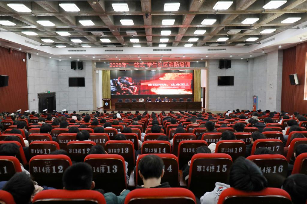 本网讯 为进一步增强师生消防安全意识,提升应对突发火灾的自救互救能力,11月19日,学院特邀湘潭市消防救援支队在我院“一站式”学生社区开展消防安全教育活动。副院长林继华、市消防救援支队副支队长朱永超、学院相关部门负责人及师生代表400余人参会。