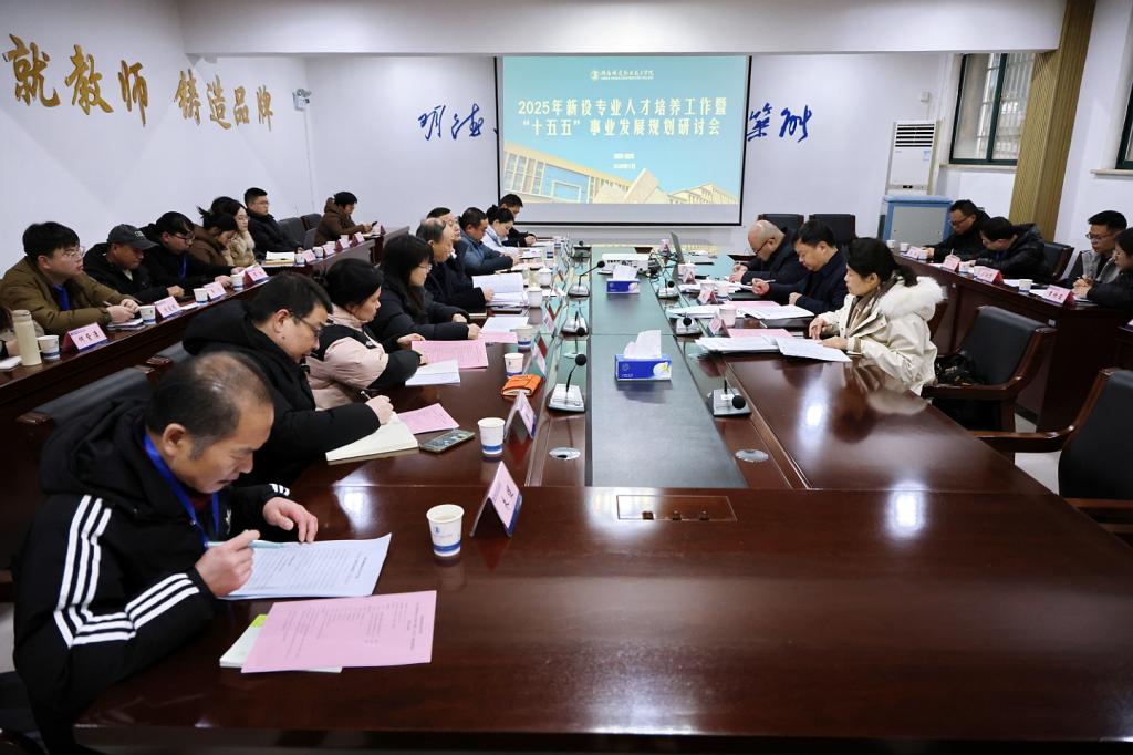 本网讯 1月20日,我院召开2025年新设专业人才培养工作暨“十五五”事业发展规划研讨会。会议特邀长沙航空职业技术学院教师发展中心主任彭圣文、湖南现代物流职业技术学院教务处处长肖帅、湖南石油化工职业技术学院教务处处长黄丹群到会指导。我院院长周劲松出席,教务处、发展规划处、质量管理处等职能部门负责人,各教学系主任、副主任,以及2025年新设专业带头人和骨干教师参会。会议由副院长李曾辉主持。