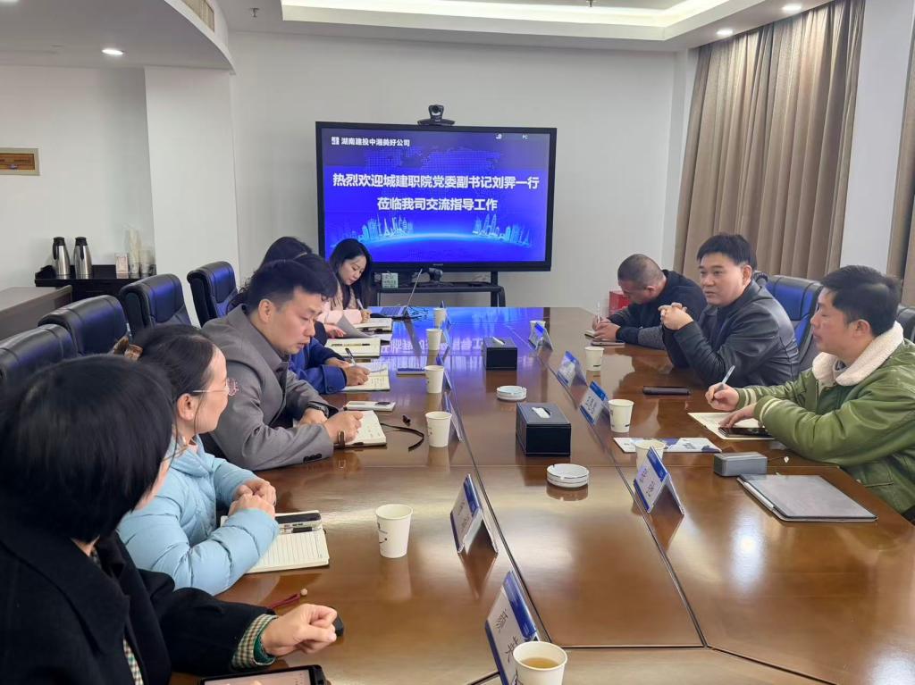 本网讯 1月23日,院党委副书记刘霁带队赴湖南建设中湘美好公司(以下简称“中湘美好”)访企拓岗。中湘美好党委副书记欧艳梅接待并主持召开座谈会。中湘美好董事会秘书万志强等人出席,学院管理工程系党总支书记、现代物业管理专业带头人、现代物业教研室主任参加。