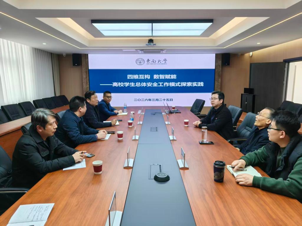 下午,调研组赴东南大学开展高校学生安全管理工作专题调研,重点考察该校学生行为预警系统与多维心理危机预警系统的建设架构、运行机制及实践成效,并就信息化技术在学生安全风险防控与精准干预中的应用进行深入研讨。