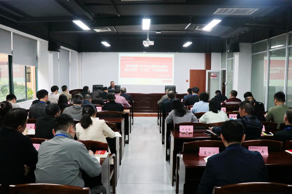 马克思主义学院教授王君毅以“深学细悟2026年全国两会精神 奋力书写“十五五”开局新答卷”为主题作了辅导报告。会上,党委书记肖继军,党委委员、组织人事部部长黄凯作中心发言。