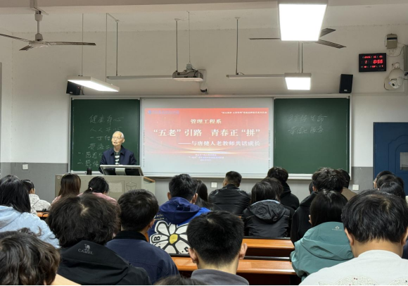 本网讯 为坚定不移落实立德树人根本任务,扎实推进关心下一代工作走深走实,进一步发挥“一站式”学生服务社区育人作用、推进“匠心筑梦 五彩管理”党建品牌建设,10月20日,管理工程系党总支组织开展“五老”进校园活动,特别邀请退休老教师唐健人回到校园,以“传帮带”的方式为青年教师成长赋能、为青年学生发展领航,为系部育人工作注入“银发力量”。