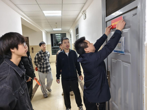 随后,林继华深入学生宿舍,实地查看了部分党员、退役军人和团学干部的寝室,并亲自为这些示范寝室挂牌。挂牌过程中,林副院长与同学们亲切交流,详细了解他们的学习、生活情况及对社区文化建设的想法建议,鼓励他们从宿舍内务整理、学习风气营造、人际关系和谐等细微处着手,切实发挥好“点亮一盏灯,照亮一大片”的辐射带动作用。